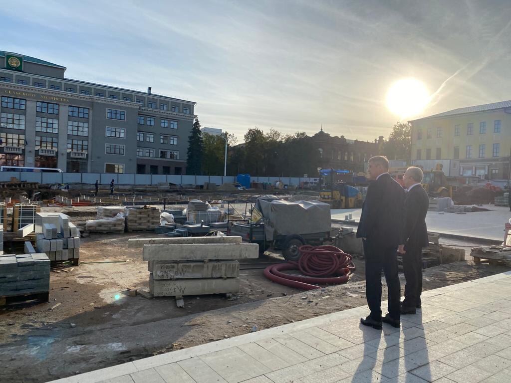 Реконструкция Советской площади в Уфе – в самом разгаре. Сегодня ход работ проинспектировал Глава Башкортостана Радий Хабиров. Строители обустраивают технические помещения для будущего фонтана, завершили прокладку и испытания его трубопроводов, приступили к укладке гранита. Кипят работы и на прилегающей территории. В сквере перед Башгоспедуниверситетом и на улице Советской демонтируют старый тротуар, прокладывают технологические кабели, устанавливают бордюры. Радий Хабиров подчеркнул, что обновлённая площадь станет новым местом притяжения жителей и гостей города.