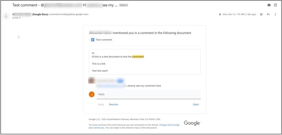 После создания такого документа, Google от своего имени отправляет электронное письмо пользователю, упомянутому в комментарии, включая полный текст от злоумышленников с фишинговой ссылкой. В качестве отправителя этого письма стоит Google, а не злоумышленники.