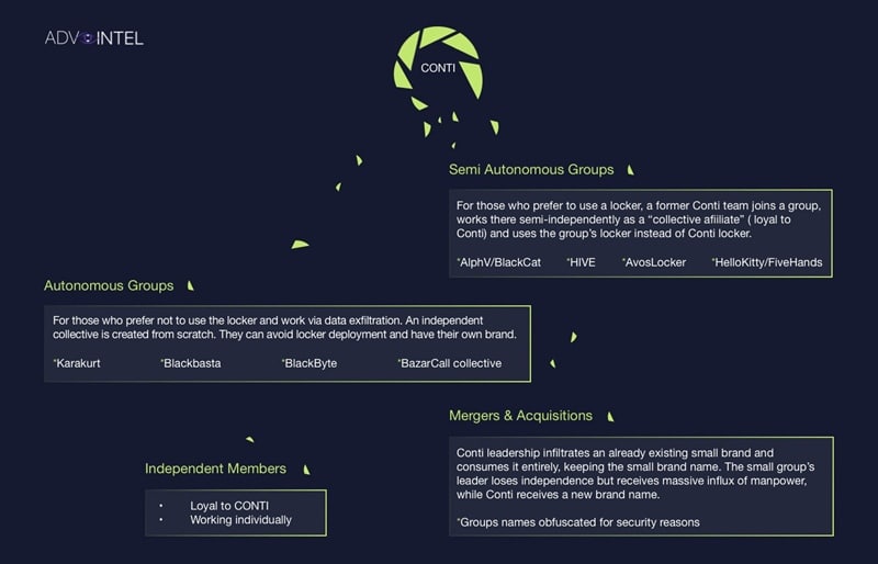 Несмотря на закрытие бренда Conti Ransomware, команда хакеров еще долго будет играть важную роль в индустрии вымогателей. Переговорщики, аналитики, пентестеры и разработчики Conti теперь работают в более мелких группировках, но все еще остаются частью крупного синдиката Conti. Разделившись на более мелкие «ячейки», Conti получила мобильность и большую способность уклоняться от правоохранительных органов. Все мелкие команды хакеров по-прежнему будут управляться центральным руководством группировки.
