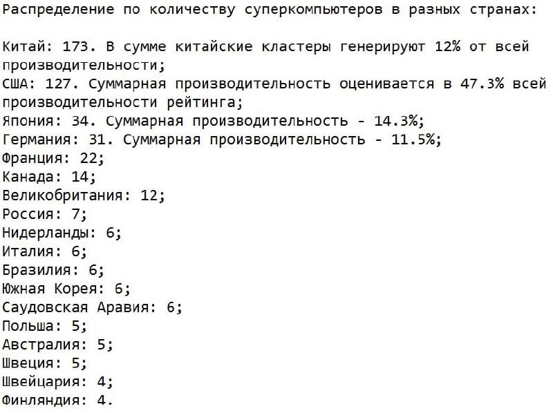 Опубликована 59 редакция рейтинга 500 самых высокопроизводительных суперкомпьютеров