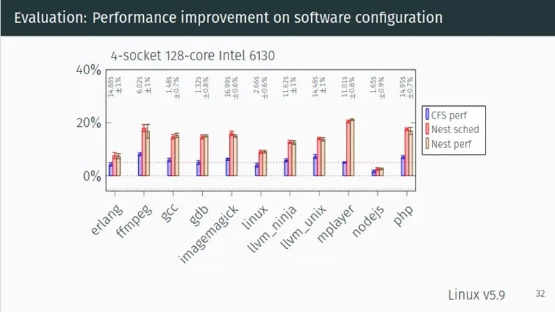 На этой неделе был представлен планировщик Nest, цель которого — удерживать задачи на сильно нагруженных ядрах с наименьшей задержкой. Разработчики Nest обнаружили, что их планировщик повышает производительность до 50% и может снизить энергопотребление на современном оборудовании.