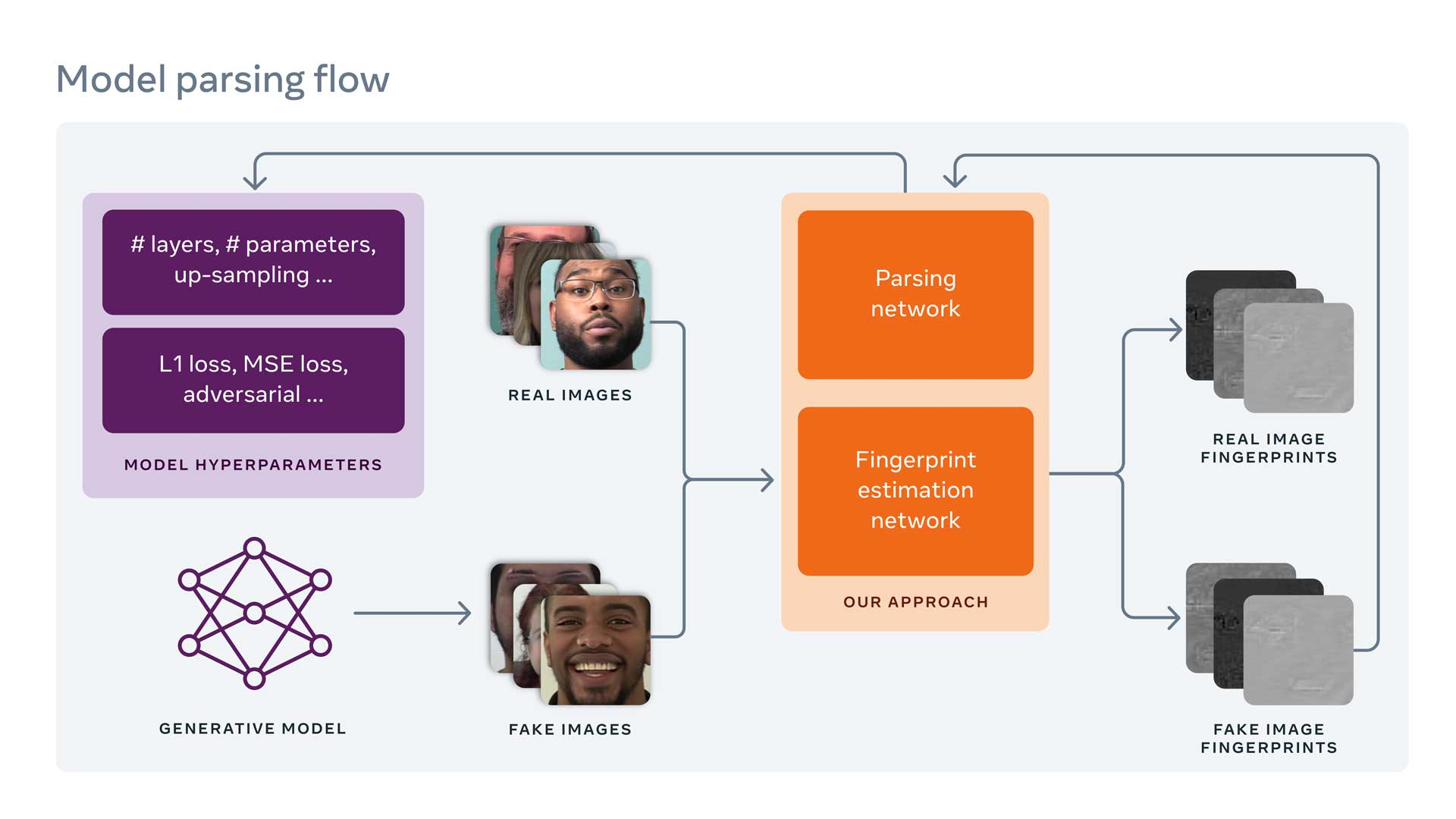 Есть уже много работ по детекции дипфейков. Парни из Facebook AI пошли дальше. Вместо бинарной классификации real/fake, они обучили сеть предсказывать какой конкретно моделью было сгенерировано то или иное изображение. Если модель не известна (то есть не было такой в трейн сете), то будет предсказана конфигурация её архитектуры: сколько блоков было в генераторе, сколько слоев, сколько кернелов в конволюциях, с какими лоссами обучалась модель и т.д. То есть, по сути — это реверс инжиниринг дипфейк-модели на основе ее выхода.