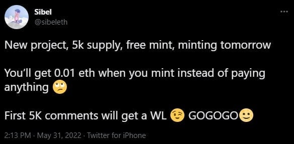 Sibel(фаундер) собственноручно собирается раздать 50 эфиров, каждому заминтившему по 0.01eth