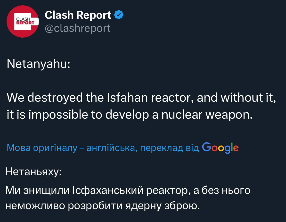 Як я і казав, у Ізраїля немає відповідних ресурсів знищити Фордо. Припинити іранську ядерну програму може тільки США