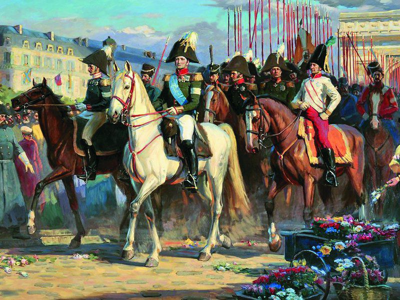 Русские и союзные войска вступили в Париж. Во время сражения за Париж 30 марта, Н.Бонапарт покинул столицу, предоставив руководство сражением и возможной капитуляцией маршалам де Мармону и Мортье.