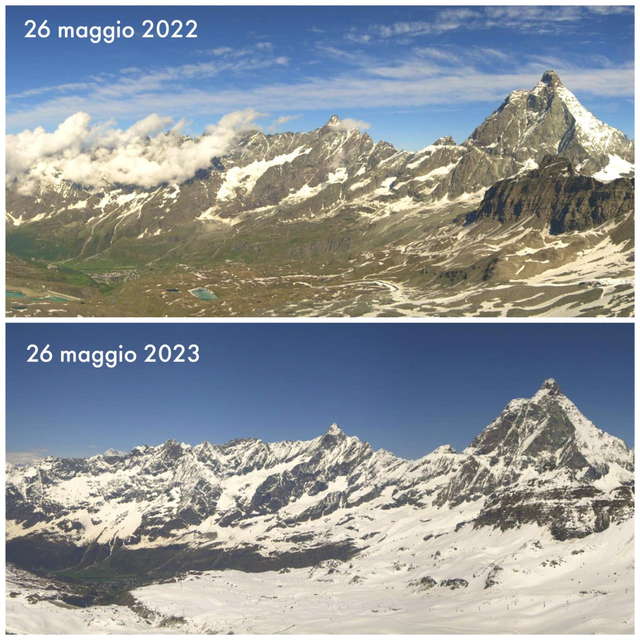 Легкое сравнение 2022 и 2023 по температуре. Фотка из долины Val d'Aosta. Этот год, безусловно, дарит надежду на приемлемую жизнь. На дворе июнь и температура во Флоренции всего чуть больше 25 градусов, тогда как на прошлой неделе вообще был дождь и немногим выше 20°С. Понимаю, что многим, наверное, не очень понятно моё нытьё по поводу погоды, но лето 2022 в Италии действительно нас сильно ранило 🥵