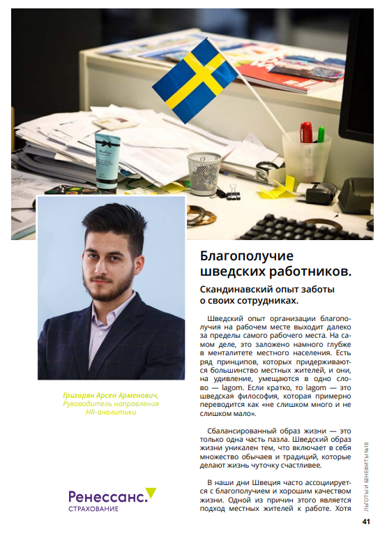 На прошлой неделе в журнале "Льготы и бенефиты" вышла моя статья под заголовком "Благополучие шведских работников. Скандинавский опыт заботы о своих сотрудниках". У вас есть блестящая возможность бесплатно скачать новый выпуск журнала и полностью ознакомиться со статьей. В ней я описал опыт внедрения wellbeing-программ в шведских компаниях. В этом посте я хотел подвести её краткие итоги. Но для начала стоит ответить на вопрос: почему именно Швеция?