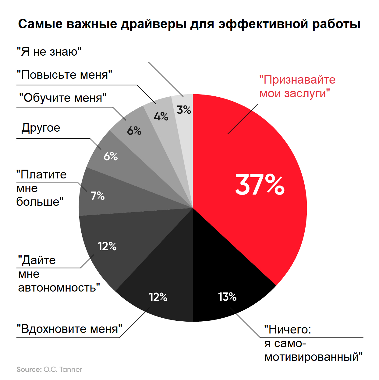 Становится логично, почему компании тратят миллиарды долларов ежегодно на специальные программы признания сотрудников с учетом того, что 3 из 4 сотрудников должного признания не ощущают (на примере исследования в UK)