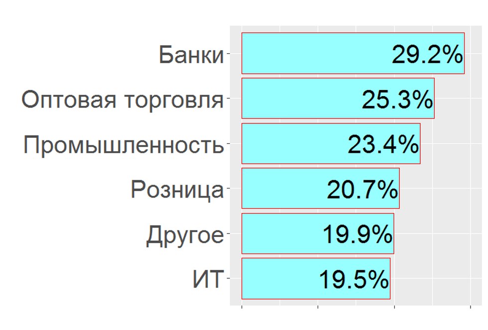 Я просто посчитал % тех, кто указал, что уволился по инициативе работодателя по отношению ко всем уволившимся в разрезе отраслей.