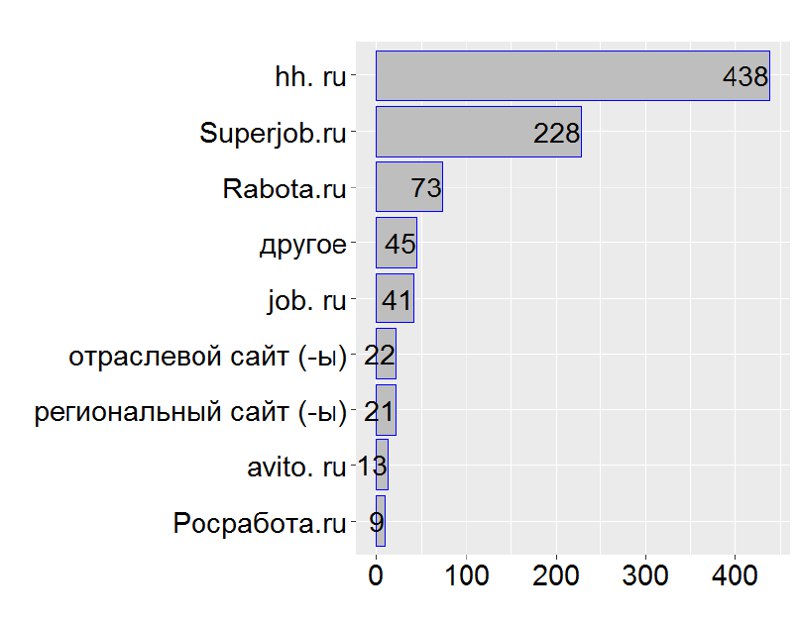 Это результат нашего опроса для кандидатов – диаграмма аккумулирует ответы на вопрос, на каких джоб сайтах кандидат размещает свое резюме.