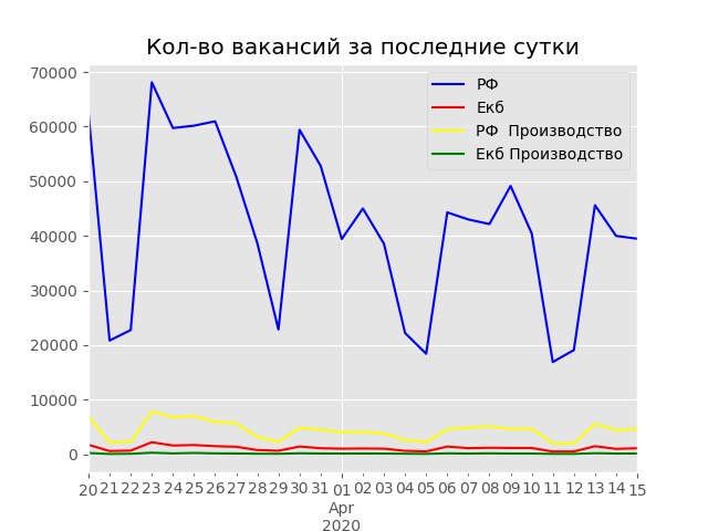 Команда «диванных» аналитиков из компании СВЭЛ Дмитрия Королькова (Екатеринбург) для своих собственных нужд качает данные вакансий и резюме с ХХ. Посмотрите на картинку: синяя линия — это динамика новых вакансий. Аплодирую коллегам и вас призываю это сделать. Стоит пройти по ссылке и прочитать пост Дмитрия Королькова.