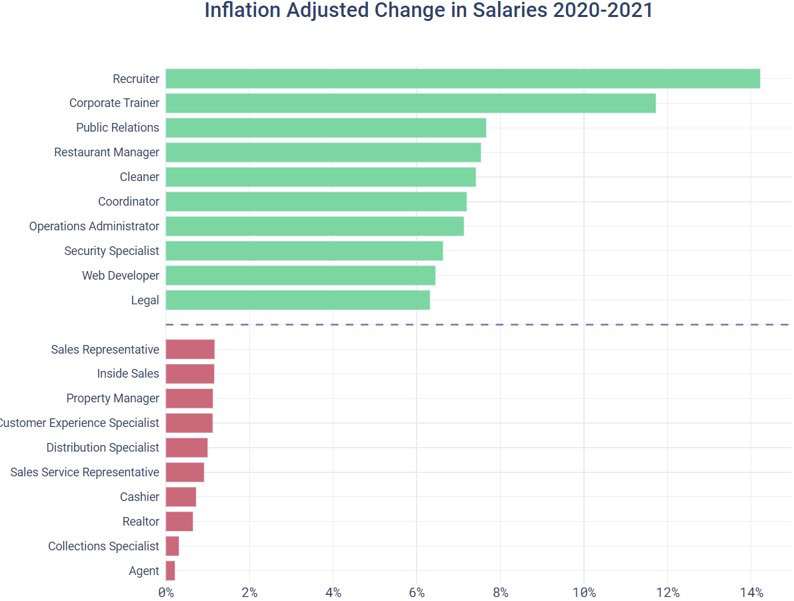 2021 год кажется годом набора рекрутеров. Уровень найма резко вырос, как и зарплаты в объявлениях о вакансиях. Позиции рекрутеров также имели самый большой рост заработной платы в 2021 году после поправки на инфляцию.