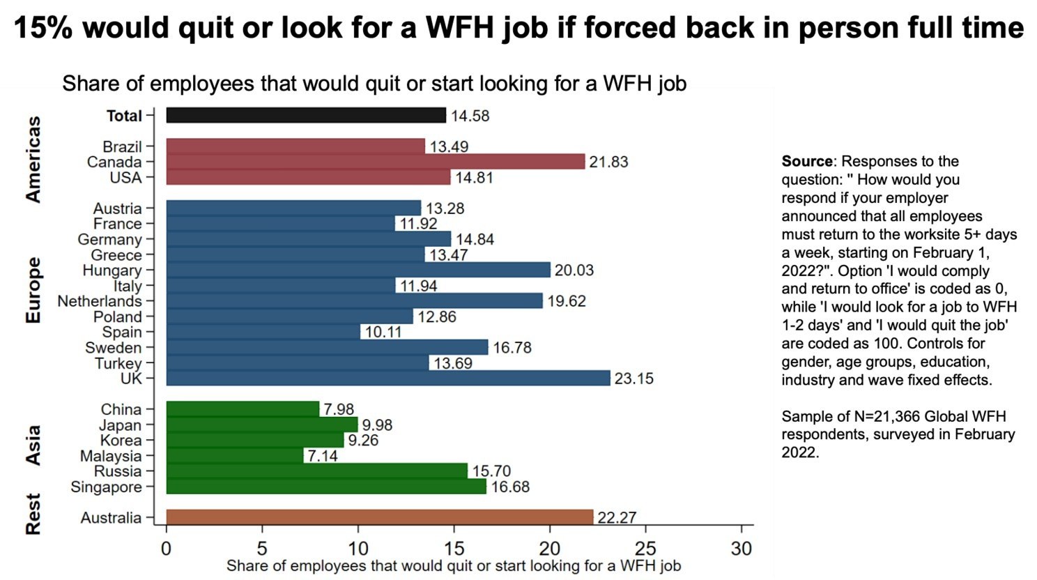 Западные исследования показывают (и по России есть данные): если завтра компании попросят всех удаленщиков вернуться на full тайм с 8 до 5 в офис, то в средем 15 % уволятся или будут искать новую работу. Хотя по ощущениям - 15 % согласились бы выйти в офис на full time