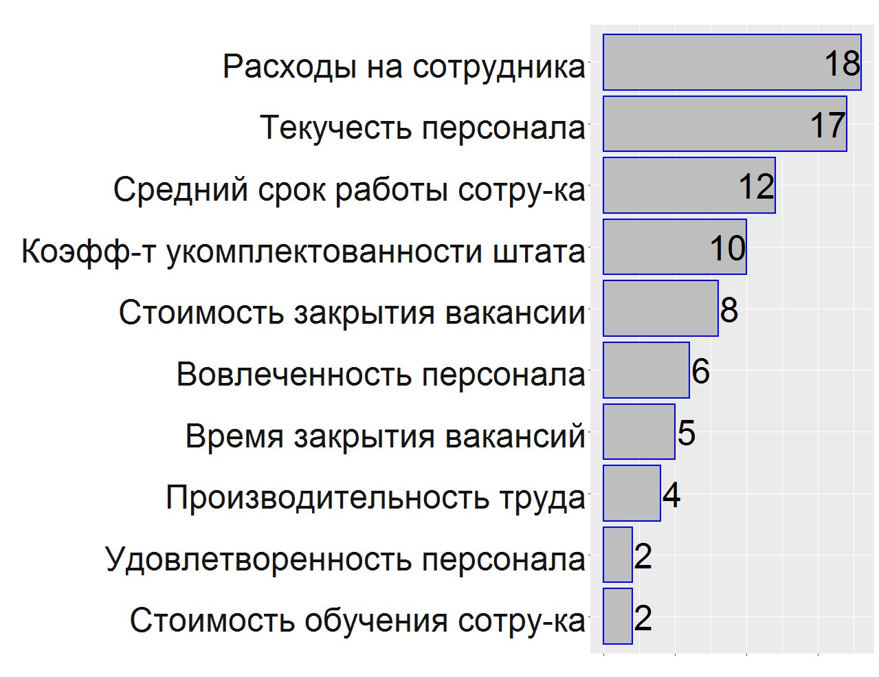 1. На диаграмме слева результаты опроса: какие HR-метрики Вы считаете в своей компании.