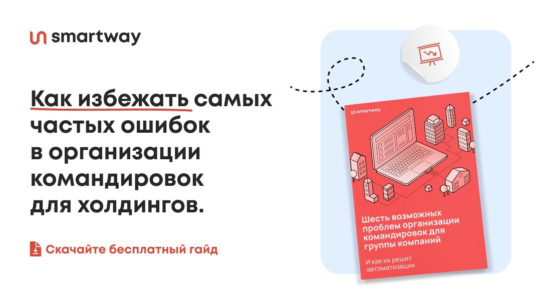 Вопросов много и кто-то все-таки должен на них ответить. За дело взялись эксперты по командировкам сервиса Smartway. Они написали объемный и полезный гайд «Шесть возможных проблем организации командировок для группы компаний». В нем разобраны самые неприятные ошибок, которые случаются в крупных компаниях.