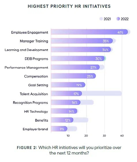Западная компания Lattice провела опрос среди 820 западных же HR (более половины - HR-директора), 66 % США, остальные - Великобритания 19 %, Нидерланды 4%, Германия 3 %, остальные 8 % с целью выявить приоритеты на 2022 год