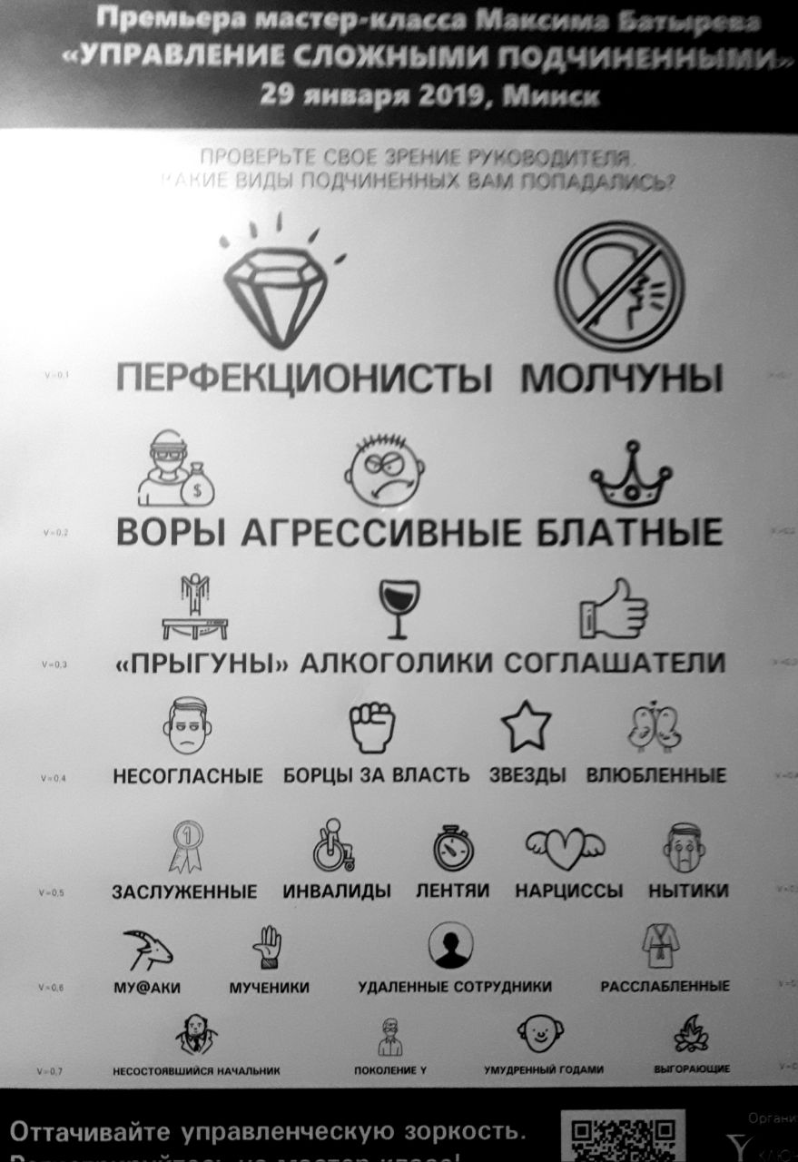 В лифте висит вот это объявление. Учат вешать много уничижительных ярлыков. Ну и, разумеется, расчет на китч или эпатаж. Это все то же из рода тренингов про "профессиональную эксплуатацию подчиненных". Брр, у меня до сих пор пупырышные мурашки от этого словосочетания.