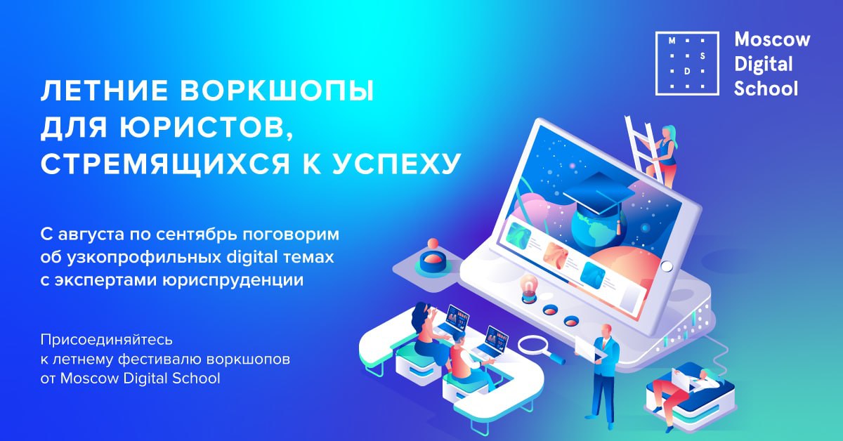 Приглашаем вас принять участие в фестивале летних воркшопов от Moscow Digital School, на котором вы сможете поговорить об узкопрофильных digital темах с ведущими экспертами юриспруденции.
