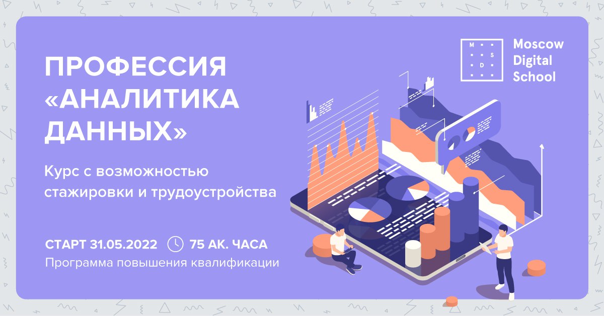 Приглашаем вас на курс «Профессия «Аналитика данных» от Moscow Digital School. Во время обучения вы освоите логические операторы SQL, работу с дашбордами BI, визуализации данных в Python, инструменты Excel и создадите свой аналитический проект. Научитесь строить прогнозы на основе данных и помогать бизнесу принимать решения.