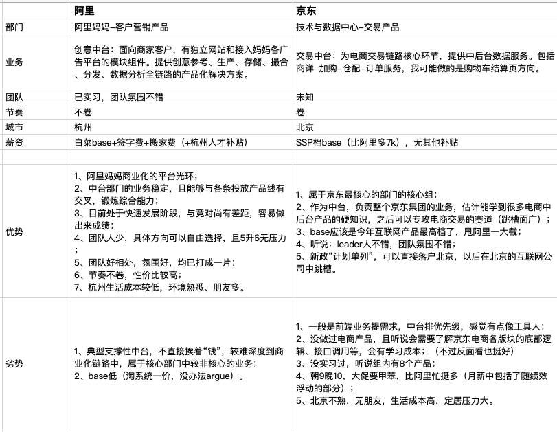 今年秋招,决赛圈offer了剩下了阿里和京东,暑期是在阿里实习的,没在京东实习过。求各位大佬看下哪个更值得去,给点建议,谢谢😭