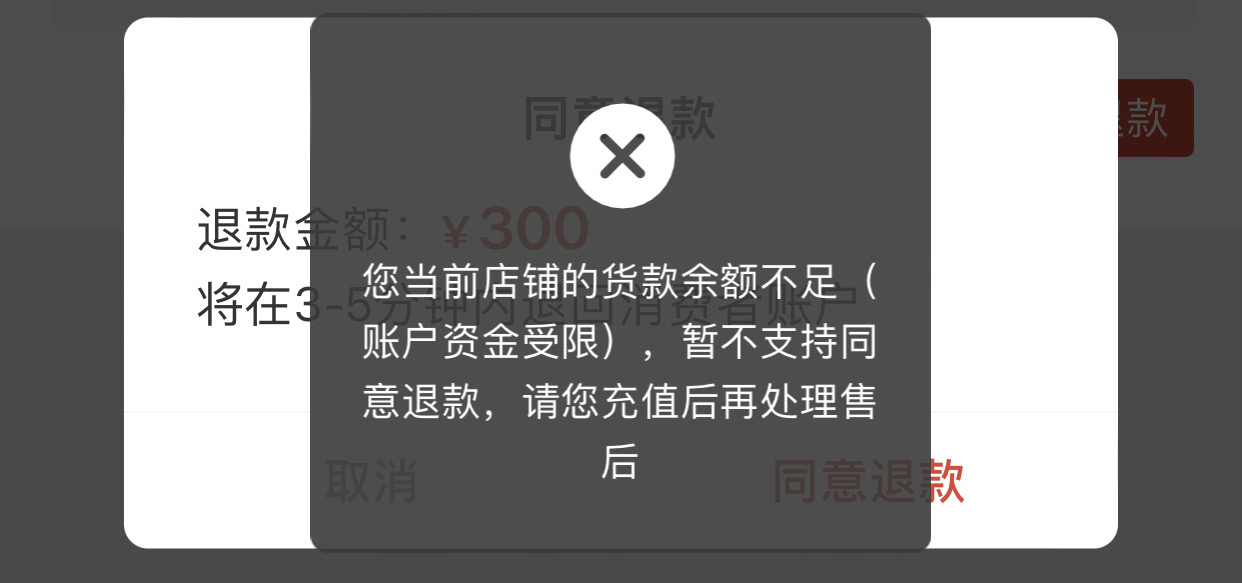 故意设计得让顾客手滑下单,一个月退款订单比其他平台一年都多,每笔订单都收技术服务费。我是没交保证金还是怎么滴?货款余额不够你先从保证金里扣啊!