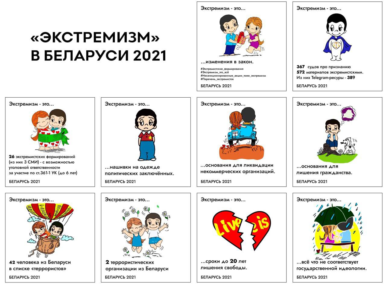 А пока – рисунки о том, что такое экстремизм в Беларуси версии 2️⃣0️⃣2️⃣1️⃣