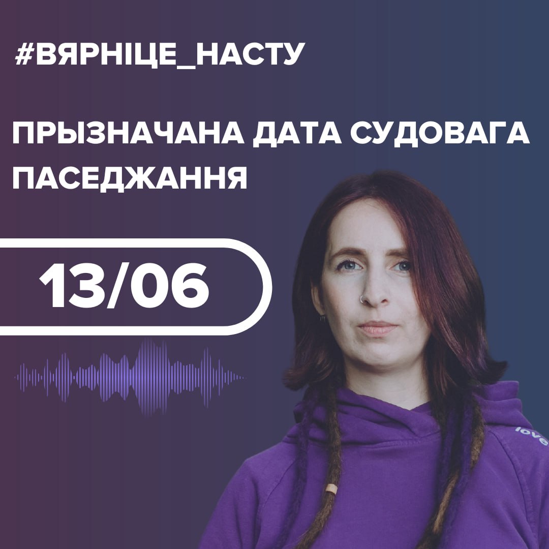 Справу праваабаронцы Насты Лойка пачнуць разглядаць 13 чэрвеня ў Мінскім гарадскім судзе. Працэс будзе весці суддзя Алена Шылько.