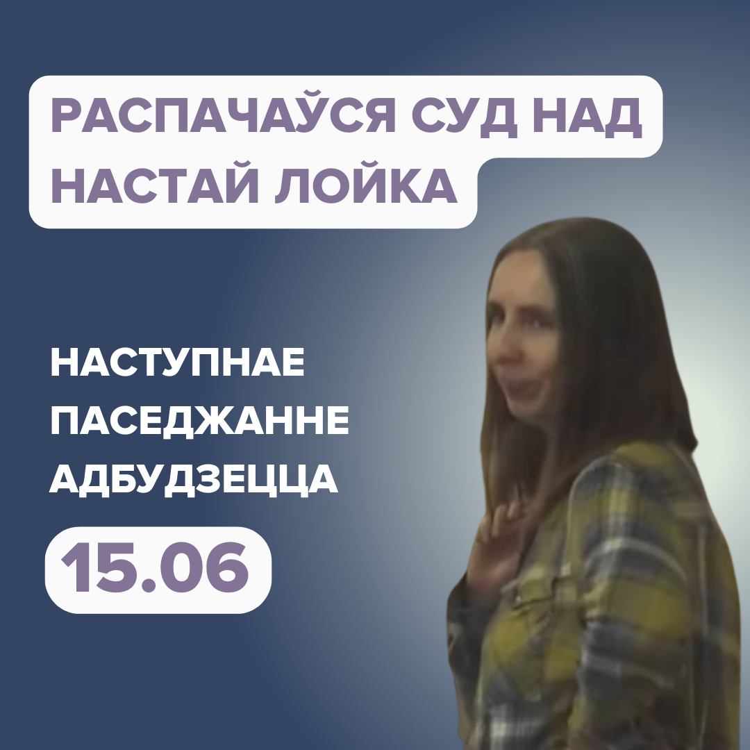 Справу праваабаронцы Насты Лойка пачнуць разглядаць 13 чэрвеня ў Мінскім гарадскім судзе. Працэс будзе весці суддзя Алена Шылько.