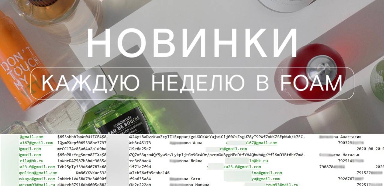 Сегодня наши специалисты нашли объявление о продаже очередной базы данных. На этот раз, информация может принадлежать клиентам интернет-магазина косметики Foam. Стоимость базы почти на 1,5 млн строк составляет всего 210$.