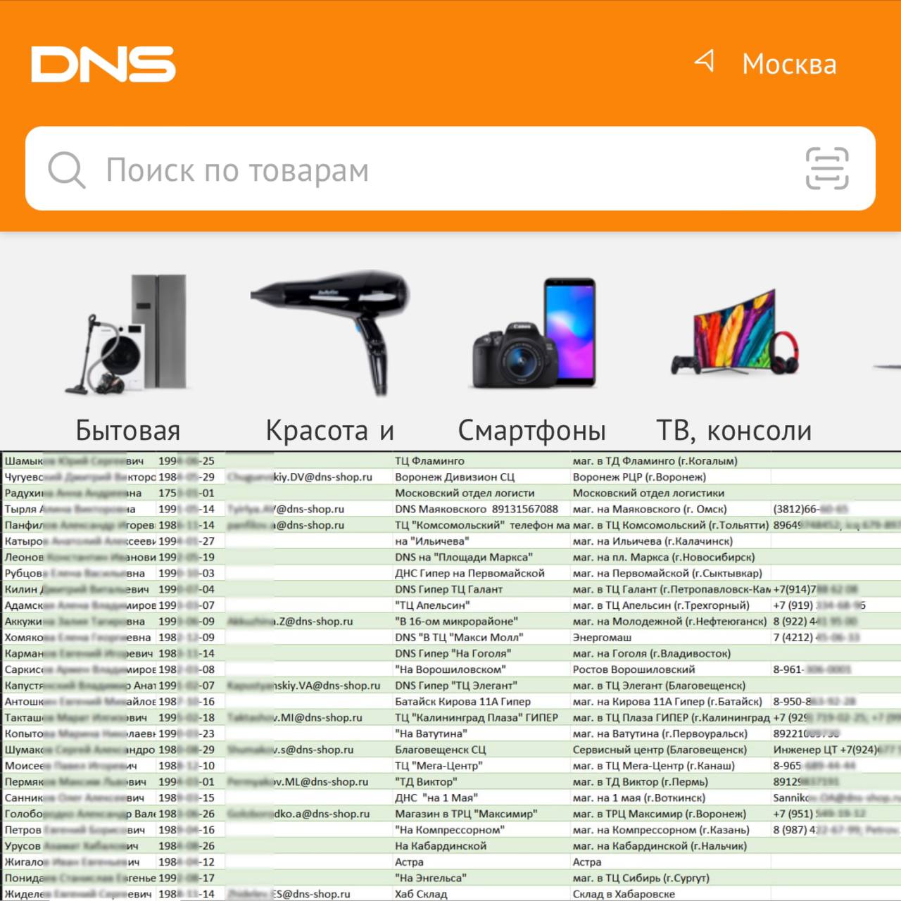 В Сети появилась информация об очередной утечке интернет-магазина цифровой и бытовой техники DNS. В открытый доступ попали более 150 тыс. строк данных о сотрудниках, среди которых: