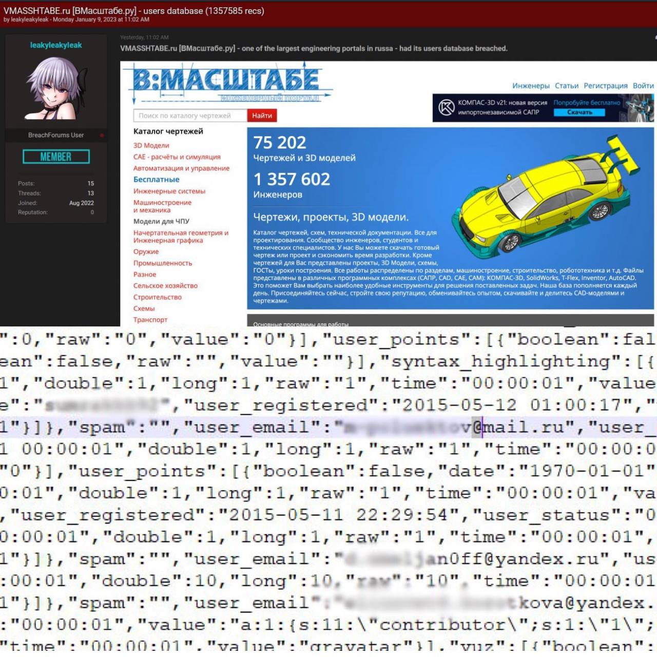 На одном из теневых форумов обнаружена база данных, которая может быть результатом утечки инженерного портала «В Масштабе.ру». По нашей информации, данные выгружены из оставленного в открытом доступе Elasticsearch-сервера.
