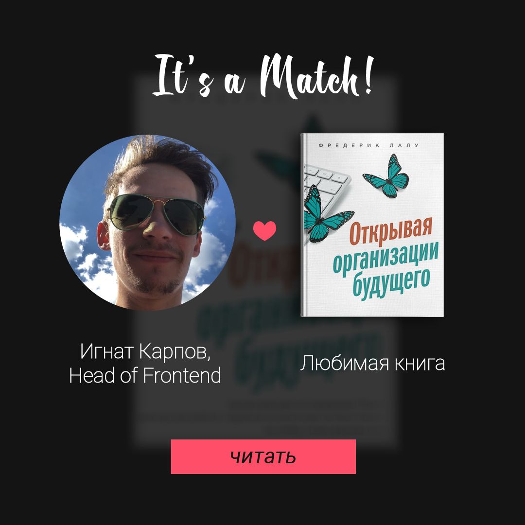 Первый герой — Head of Frontend Игнат Карпов. Он рекомендует книгу Фредерика Лалу «Открывая организации будущего».