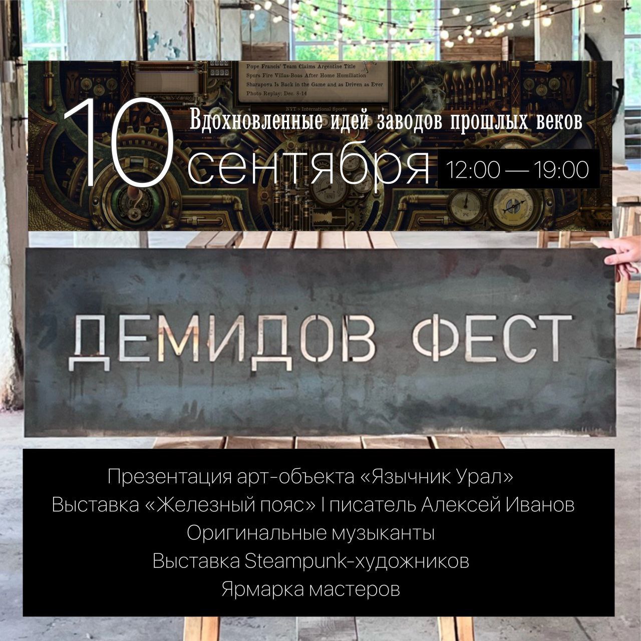 10 сентября в 12:00 Креативный кластер «Щёрный квадрат» приглашает тагильчан и гостей города на «Демидов-фест», который состоится в поселке Черноисточинск под Нижним Тагилом.