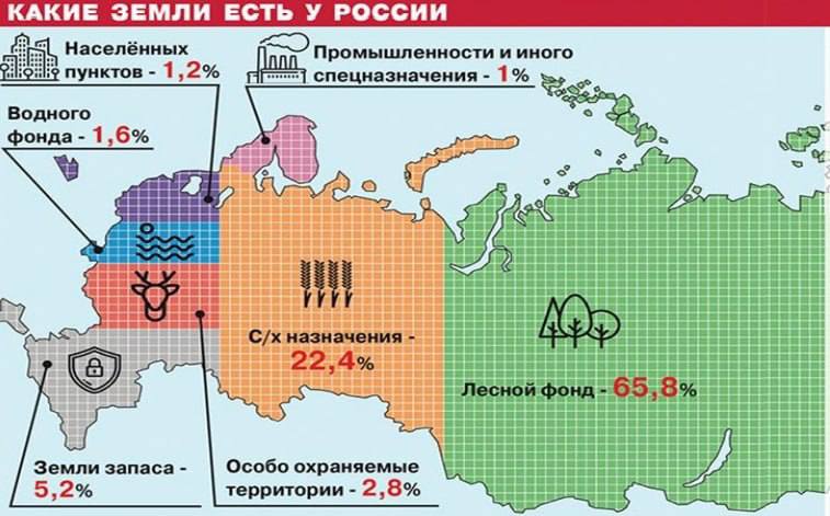 📌 земли фонда перераспределения — 43,7 млн га, в том числе 11,9 млн га сельскохозяйственных угодий, из них 3,5 млн га пашни;