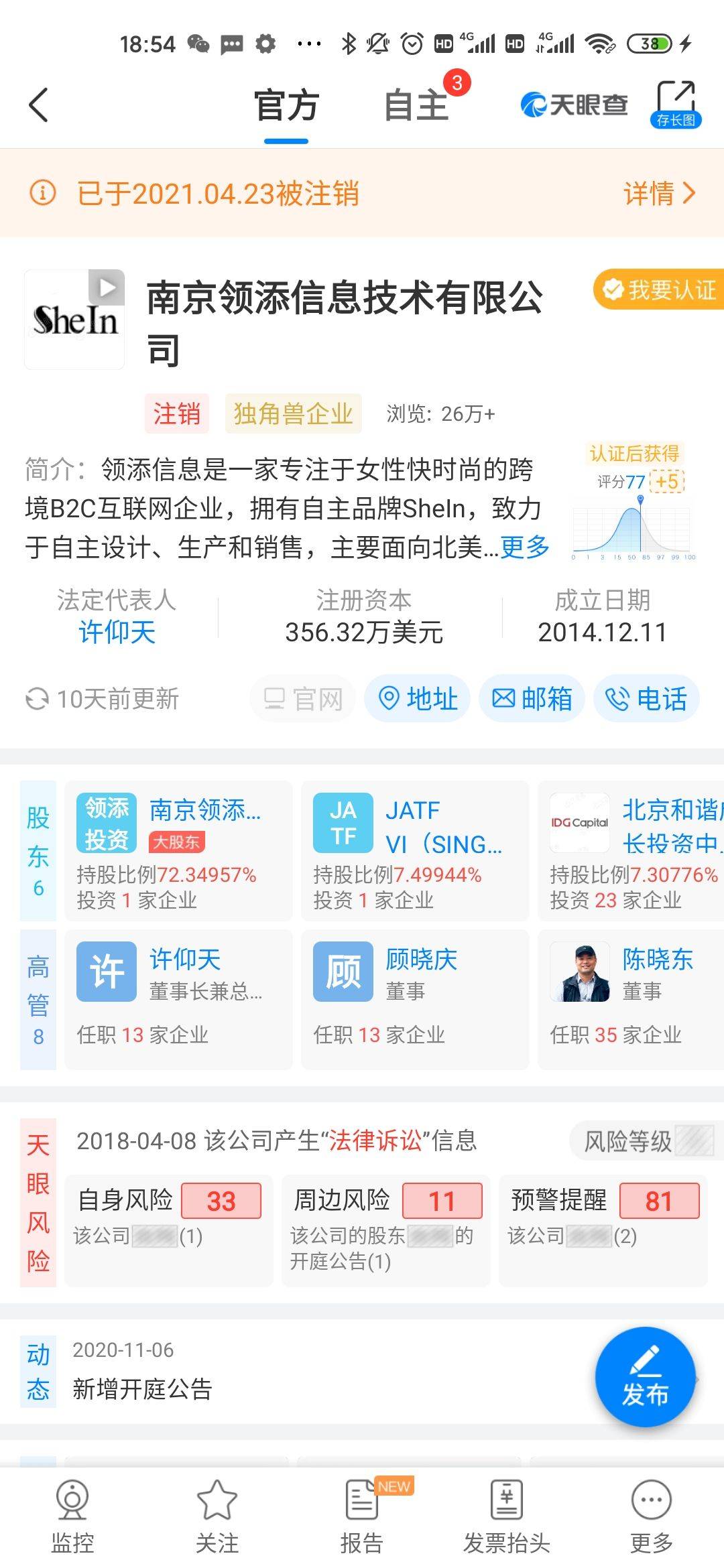 后知后觉发现shein在南京的公司注销了哎……换成注册在深圳了。作为一个南京人……不得不问一句南京这地方还有什么新产业呢 |・ω・`)