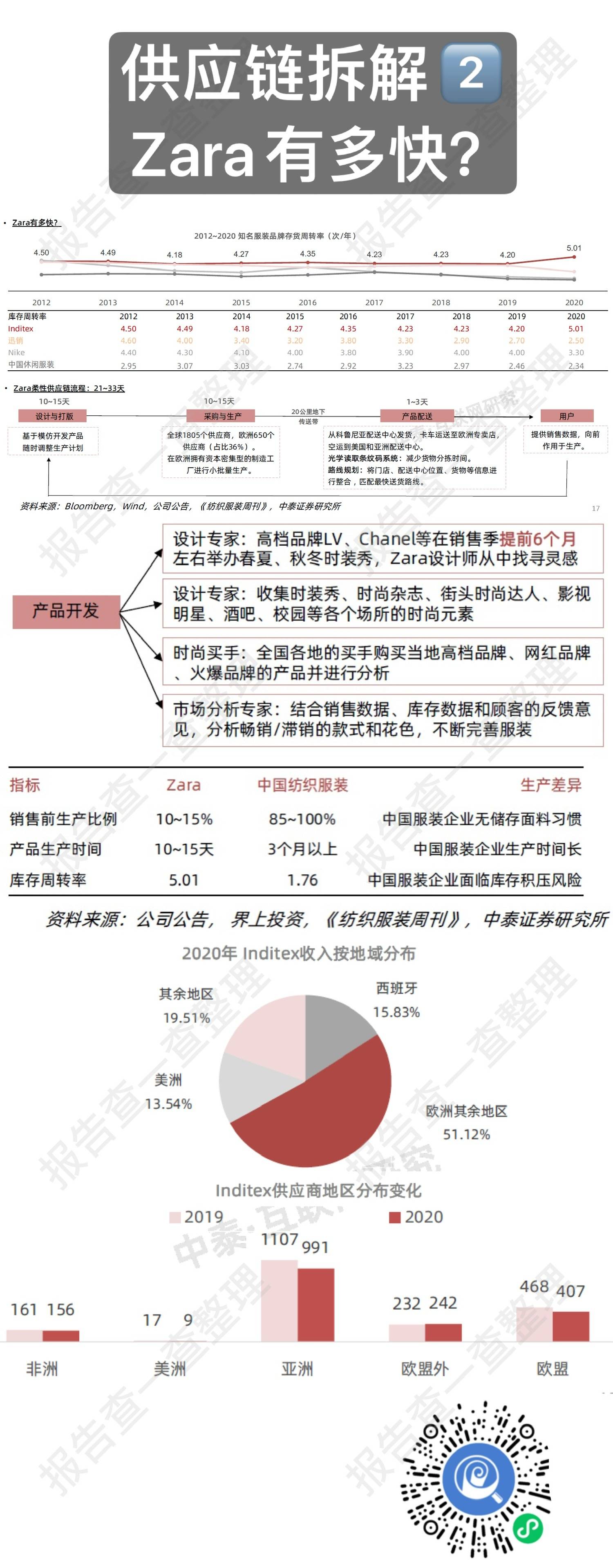 3)Inditex供应链垂直化管理 + 小单快反生产方式。