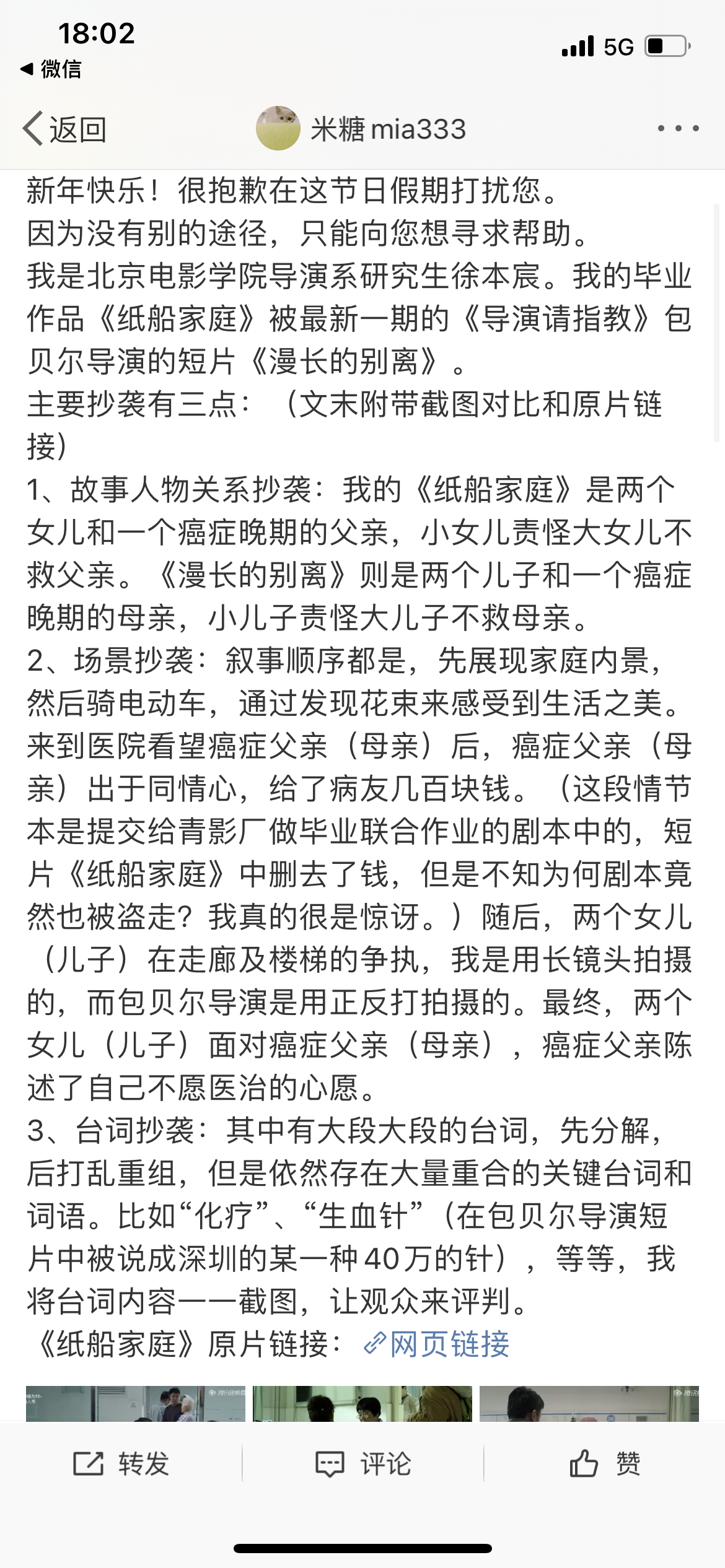 徐本宸是我初中同班同学,也是我班长,毕业于北电导演系,毕业作品被包贝尔抄袭。