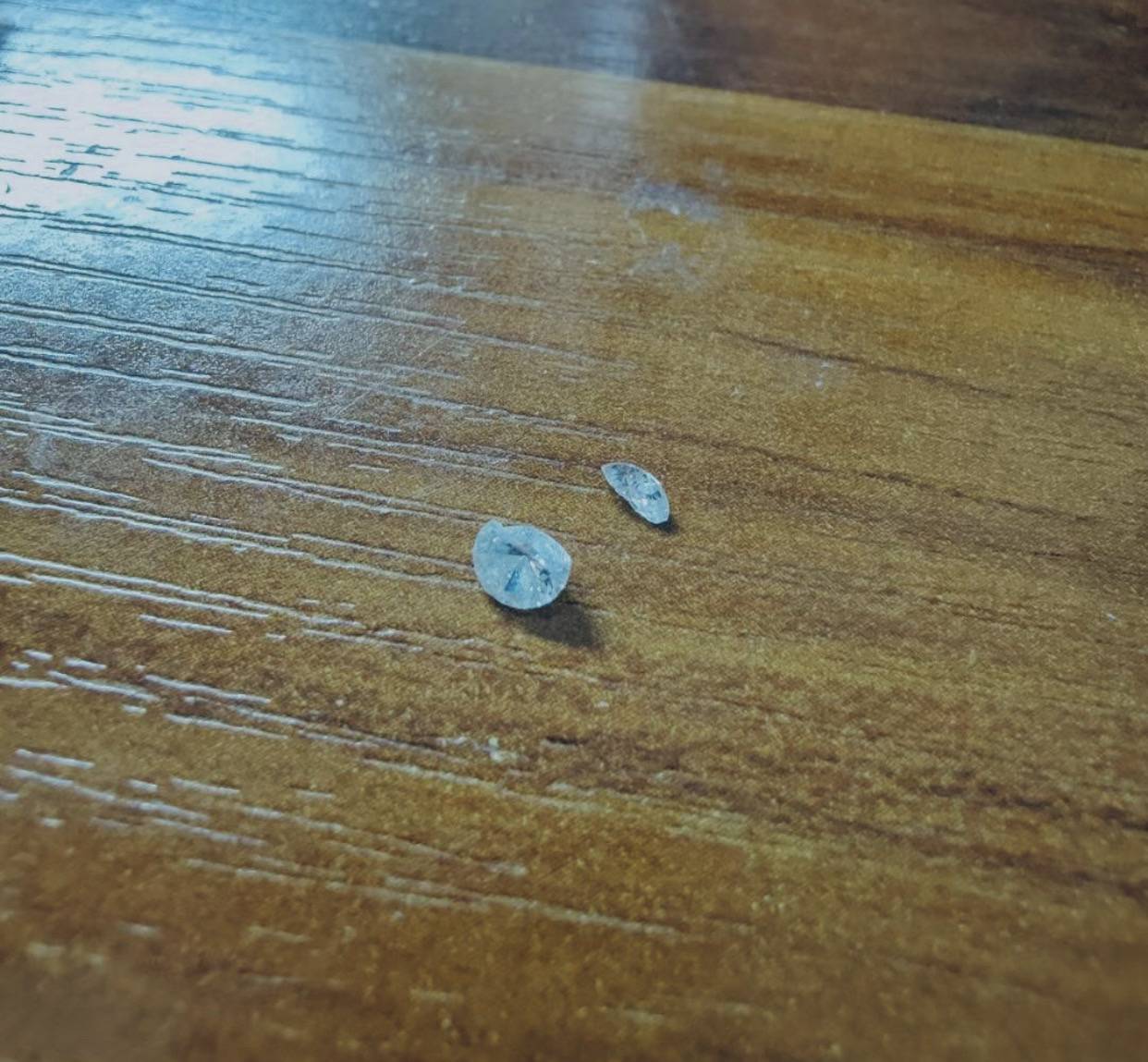 谁说钻石不会碎?这就是摔裂的,从戒托上一拆,就一分为二了😂