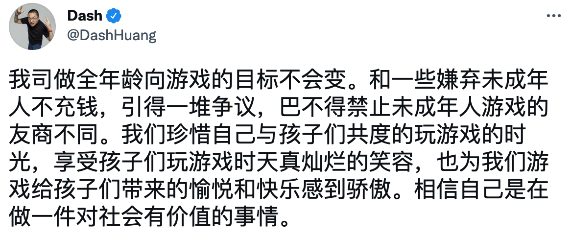 心动CEO:让家长对孩子玩游戏有更多的管理权和选择权,对于制作高品质优质健康游戏的公司来说是好事,希望将来心动和TapTap能像任天堂一样成为家长可信赖的品牌。