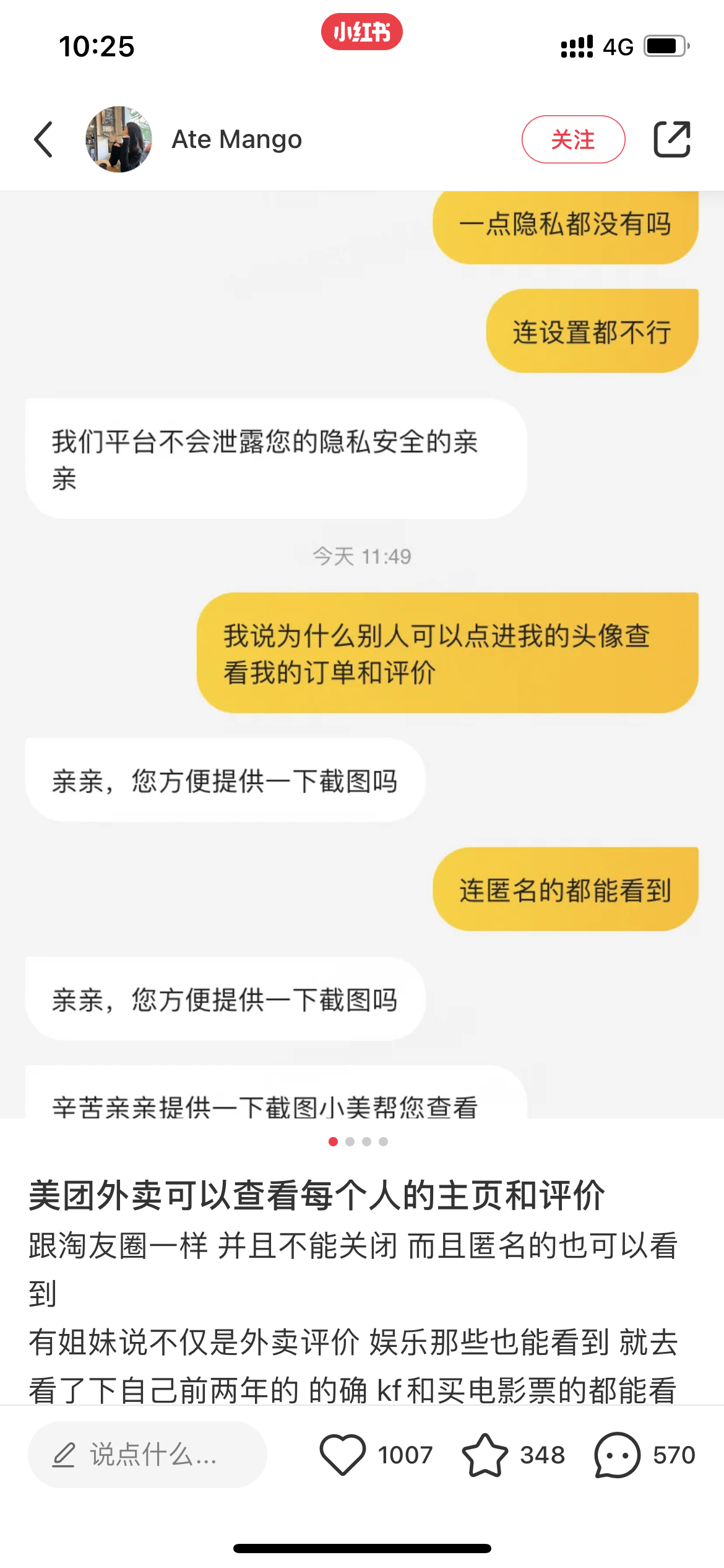 随手刷到:美团外卖上可以看一个人的所有外卖记录+消费记录。