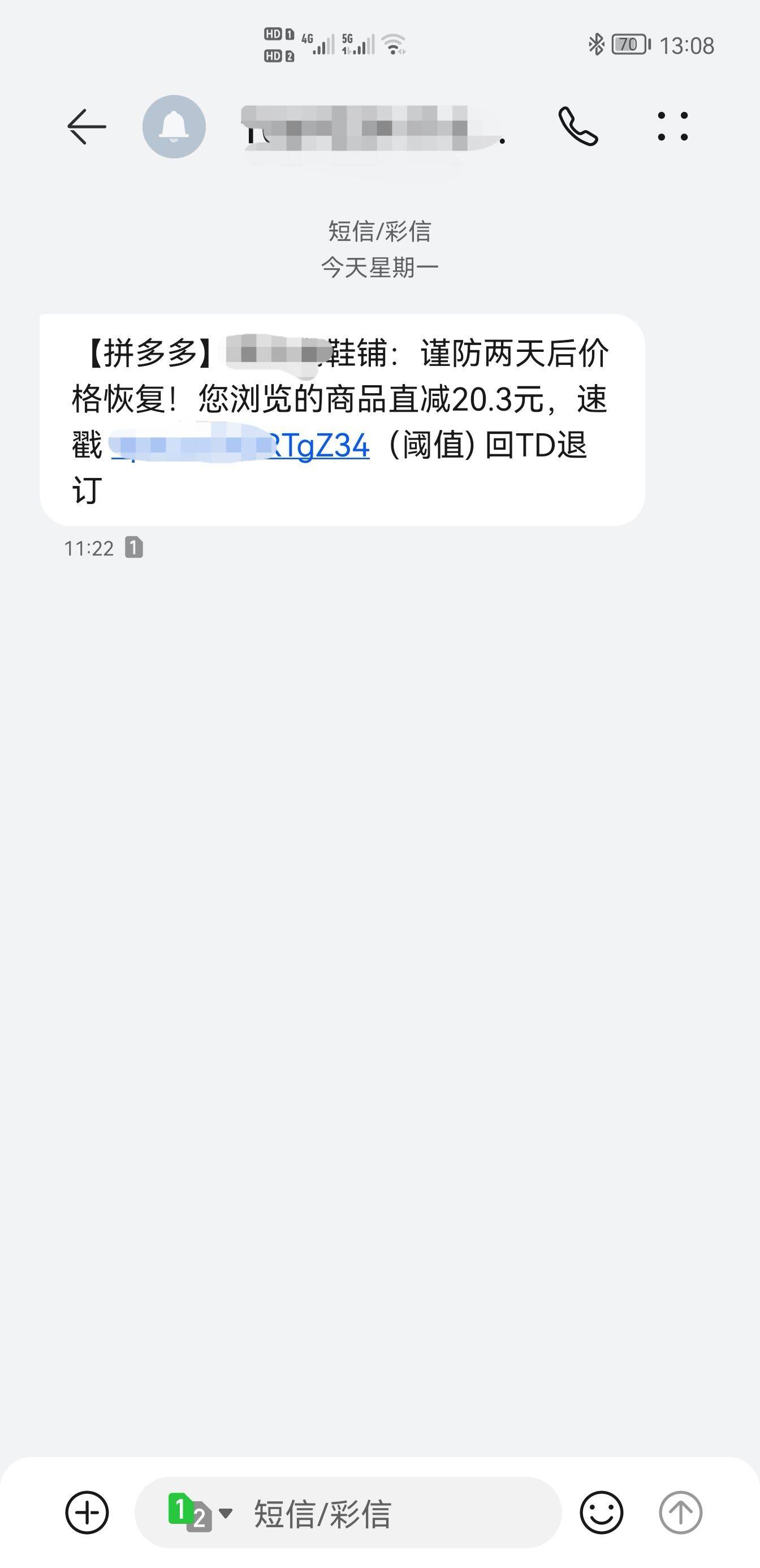 拼多多真可怕,我只是随意浏览了一个产品,第二天就收到了这家店铺的广告短信!!!