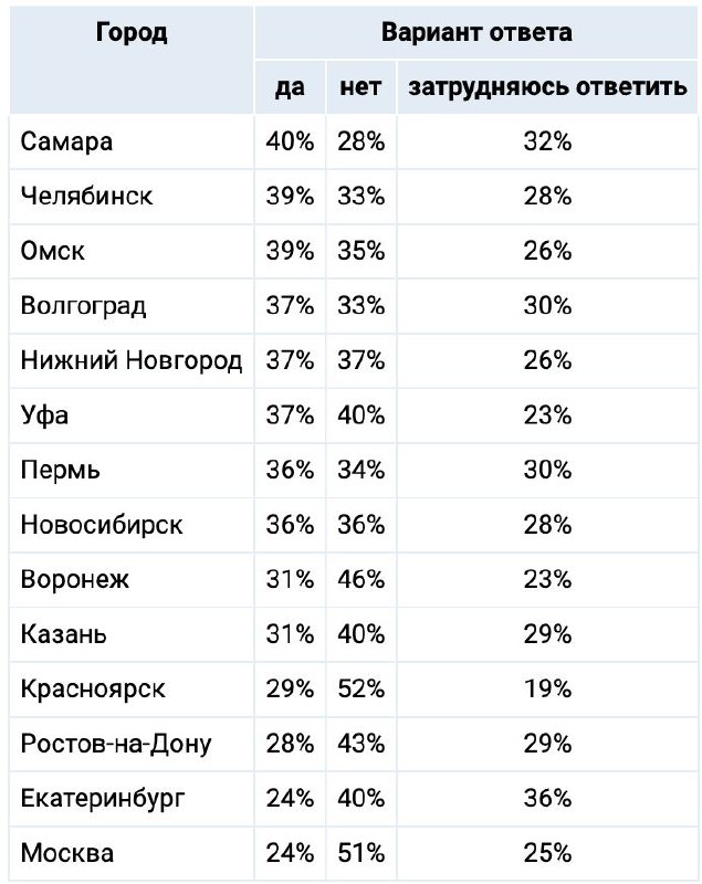 Исследователи задали россиянам вот такой вопрос: «Губернатор Санкт-Петербурга Александр Беглов подписал постановление об ужесточении карантинных мер в период до 10 января. Ограничения коснутся массовых мероприятий, организаций культуры и искусства, кинотеатров, заведений общепита, торговых центров, туристических фирм и проч. Как вы считаете, нужно ли вводить подобный карантин в вашем городе?»