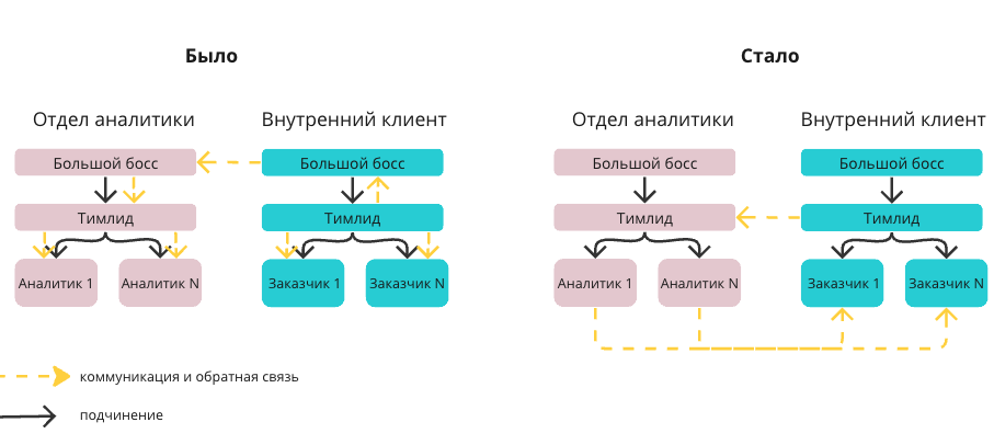 Я даже писать это устала, вы там как, еще со мной? На схеме условно нарисовала коммуникацию было-стало