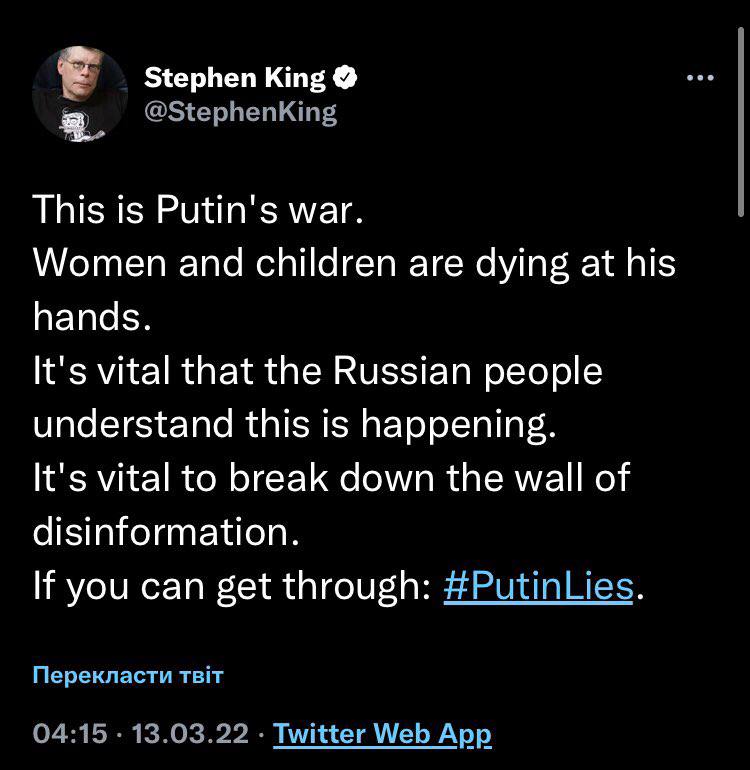 Стивен Кинг: Это война Путина
