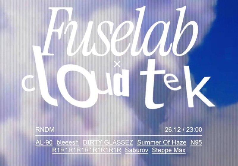 26 декабря сообщество CLOUDTEK и лейбл Fuselab объединяются в клубе RNDM на совместной вечеринке.