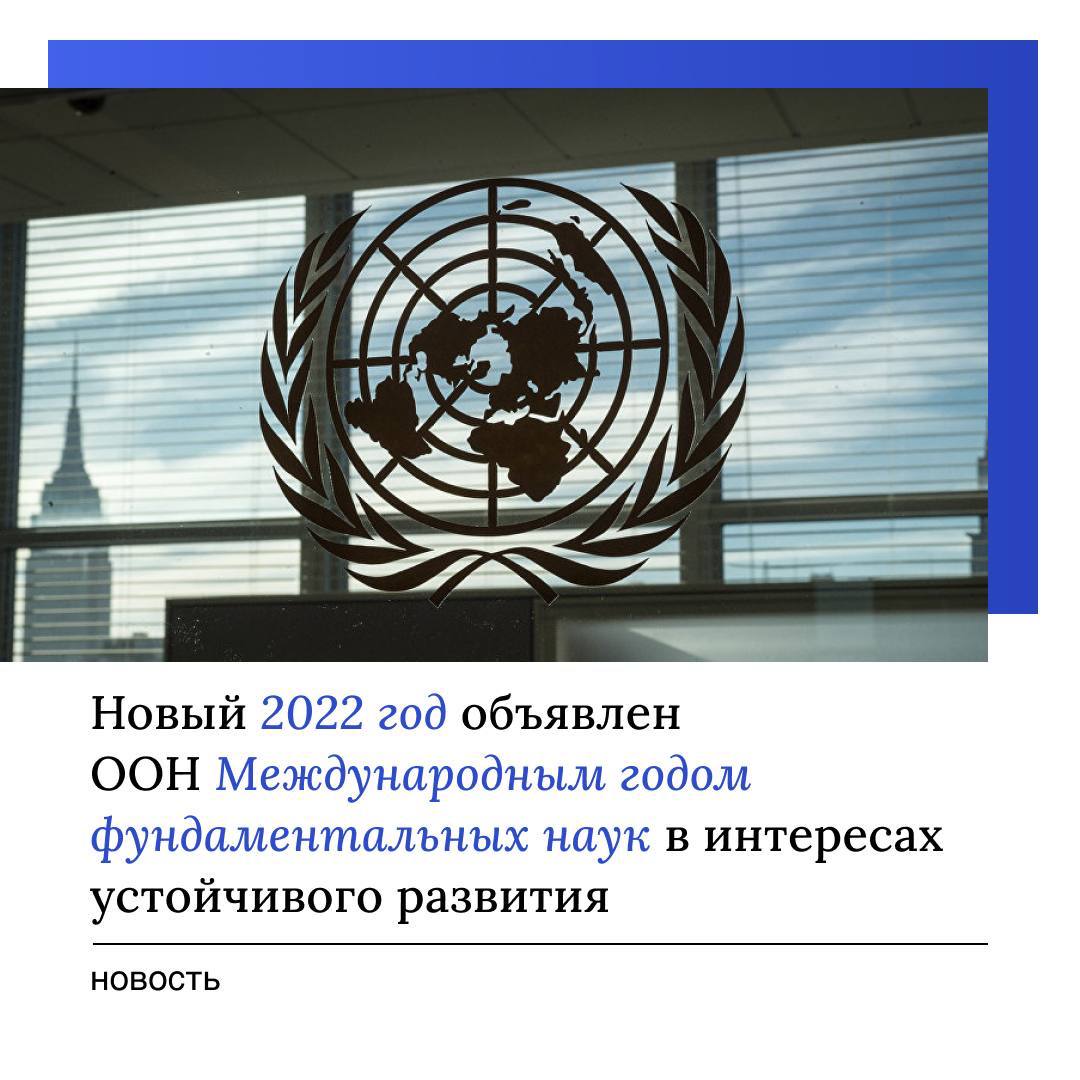 Наступивший 2022 год был объявлен ООН Международным годом фундаментальных наук в интересах устойчивого развития International Year of Basic Sciences for Sustainable Development. Главным инициатором проведения Года фундаментальных наук стала ЮНЕСКО.