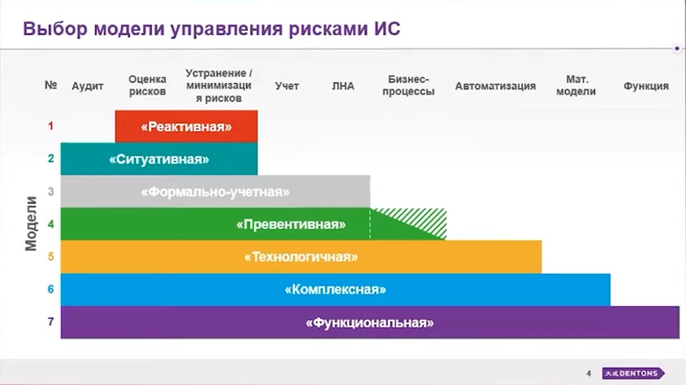 Вторая часть презентации посвящена проектам, которые сопровождал Dentons в области построения бизнес-процессов по управлению ИС: