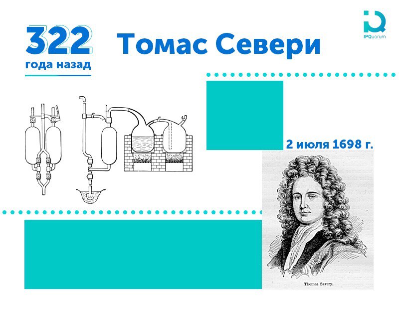 Ровно 322 года назад, 2 июля 1698года, была запатентована первая в мире паровая машина. Ею стала «пожарная установка» английского инженера и изобретателя Томаса Севери. Исключительное право на разработку ему было выдано с дозволения короля Вильгельма III.