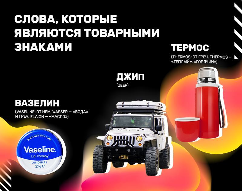 В своей речи мы часто используем термины, пришедшие к нам из других языков. Но оказывается, что многие заимствованные слова — это на самом деле зарегистрированные товарные знаки! Одеколон, фломастер, целлофан — это лишь малая часть тех слов, которые уже давно используются компаниями в качестве товарных знаков. Представляем вам другие интересные примеры и объясняем их значение: