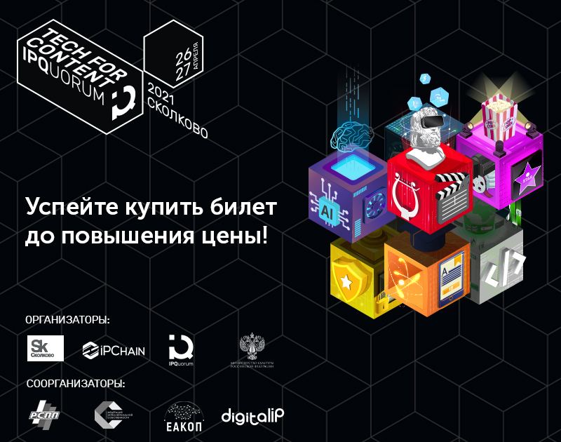 Специальные цены на билеты на ключевое событие года для развития креативных индустрий и мира интеллектуальной собственности — IPQuorum 2021: Tech for Content — продлены до 22 марта!